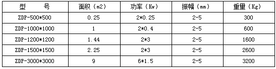 ZDP型振動平臺于生產(chǎn)流程中用于把顆粒、粉狀物料從散裝到塊狀、形狀等形式的轉變。